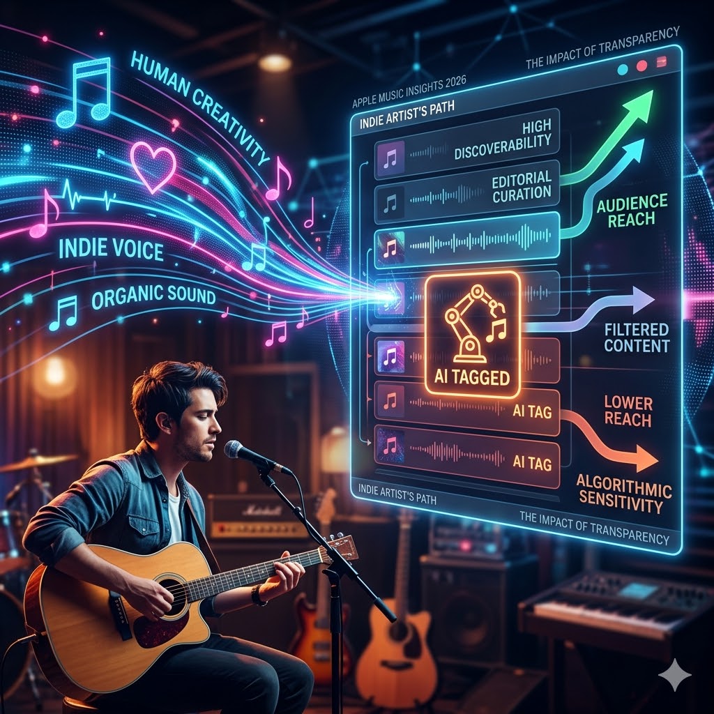 Apple’s AI tagging isn’t a death sentence for indie music—it’s a fence. It separates “functional audio” (the background noise) from “artistic expression.” Apple is trying to give human artists a clearer path to the fans who actually want to connect with a person, not a program.