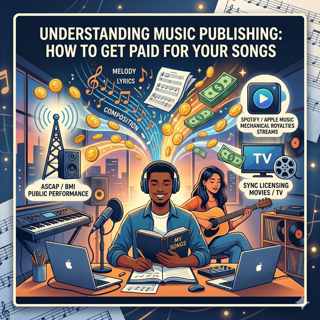 In the music business, every song is actually two separate assets: the Master (the recording itself) and the Composition (the lyrics and melody you wrote). Publishing is all about making sure you get paid for that second part.