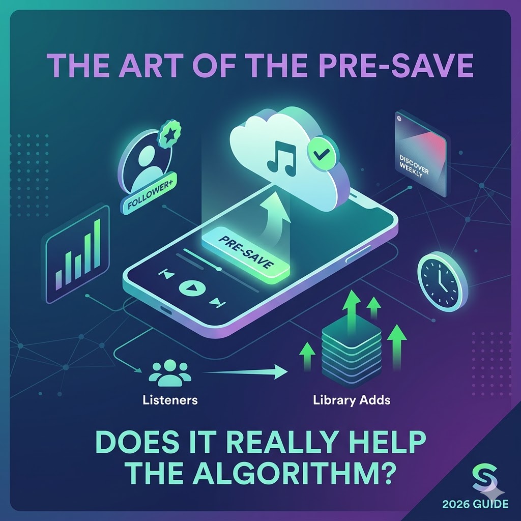 The 2026 Reality Check: You usually need to see a specific ratio of saves-to-listeners (roughly 1 save for every 6 or 7 listeners) to prove to the algorithm that your music is “sticky.” A solid pre-save campaign gives you that head start before the first 24 hours are even over.